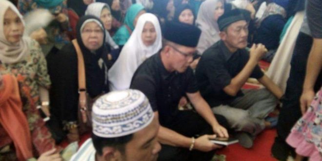 Terlihat Aswari turut serta menyambut jenazah dan membacakan surat-surat yasin untuk Almarhum H. Romi Herton yang merupakan rekan satu perguruan Aswari di bidang beladiri Kempo.