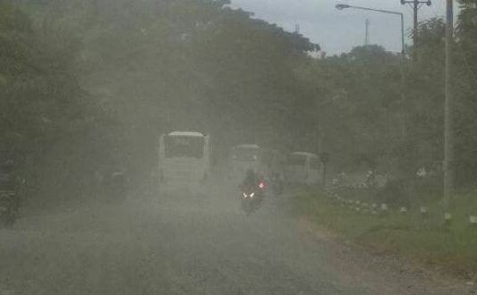 “Bapak lihat sendirikan kondisinya seperti ini, saat kendaraan menuju tambang atau sebaliknya debu pekat harus kami terima, ” Tegas Gendon.