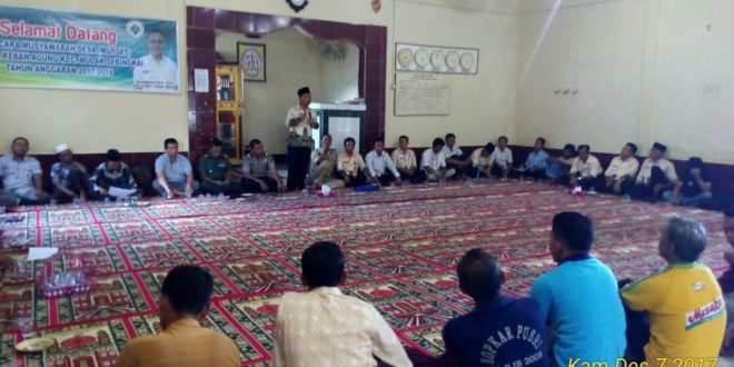 MULAK SEBINGKAI, LhL – Sebelum berakhirnya tahun 2017, akan memasuki anggaran Dana Desa tahun 2018, maka hari ini Kamis (07/12) Desa Keban Agung adakan Musyawarah Desa (Musdes) perencanaan pembangunan tahun 2018. Musyawarah Desa yang dihadiri seluruh staf Kecamatan Mulak Sebingkai, Danramil Kota Agung, Polsek Mulak Ulu, Pendamping desa dan masyarakat, yang bertempat di Masjid Takwa desa Keban Agung.