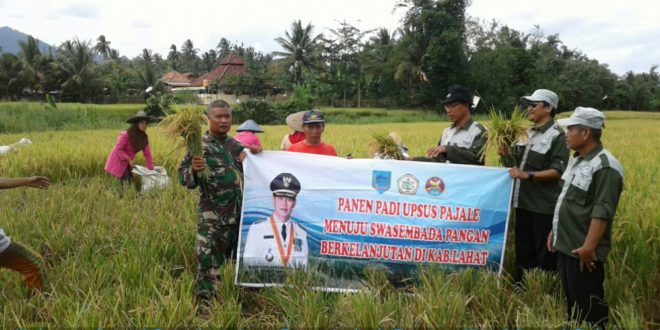 MERAPI SELATAN, LhL – Dalam rangka menuju Swasembada pangan yang berkelanjutan di wilayah Kabupaten Lahat,  Kelompok Tani (Poktan) Sepakat Jaya,  telah melaksanakan kegiatan  panen padi bersama PPL dan Babinsa Koramil 450-02/Merapi seluas 20 Ha di Desa Lubuk Betung Kecamatan Merapi Selatan Kabupaten Lahat.  Sabtu tanggal 20 Januari 2018.
