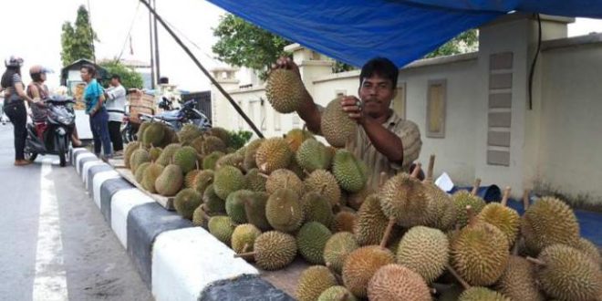 EMPAT LAWANG, LhL – Musim buah sudah tiba, beberapa jenis buah-buahan sudah berderet di setiap sudut jalan Pasar Tebing Tinggi Kabupaten Empat Lawang. Salah satu buah musiman yang sangat dinanti kedatangannya adalah buah durian. Buah berduri dengan cita rasa yang sangat menggoda selera ini, sangat banyak penggemarnya.
