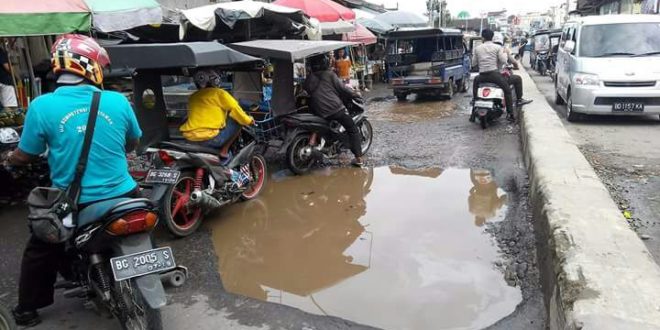 Empat Lawang, LhL – Kondisi jalan lintas tengah sumatera (Jalintengsum) di kawasan Pasar Tebing Tinggi, Kabupaten Empat Lawang rusak parah. Akibatnya, tidak sedikit kendaraan yang melalui jalan itu terjebak lobang yang cukup dalam, hingga mengalami kerusakan pada body kendaraan.