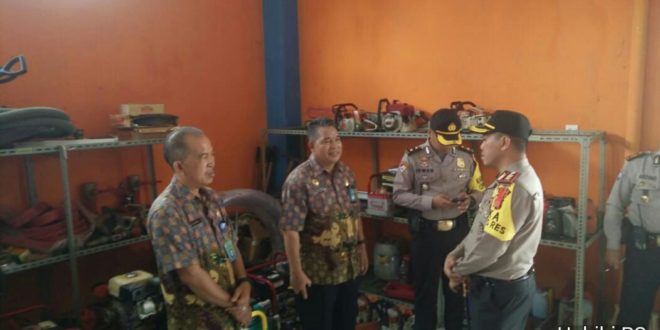 MUARA ENIM, LhL – Kepala Polisi Resort (Kapolres) Muara Enim, AKBP. Afner Juwono, SH, SIK, MH melakukan peninjauan ke Posko penanggulangan bencana Kebakaran Hutan dan Lahan (Karhutlah), Badan Penanggulangan Bencana Daerah (BPBD) Muara Enim, Kamis, (5/4/2018).