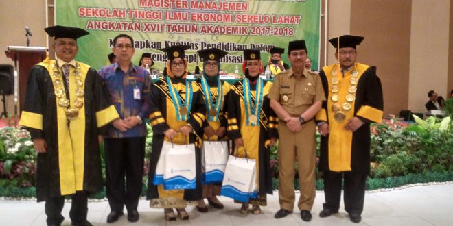 LAHAT, LhL – Sebanyak 61 Mahasiswa- Mahasiswi Sekolah Tinggi Ilmu Ekonomi (STIE) Serelo Lahat angkatan XVII Akademi 2017- 2018, di Yudisium dan di Wisuda program Pascasarjana Magister Manajemen (S2) . Dengan mengusung tema” Menyiapkan kualitas pendidikan dalam menghadapi grobalisasi.” Acara tersebut dilaksanakan di Bil Romm Hotel Grand Zuri Lahat, Senin 14/05/18.