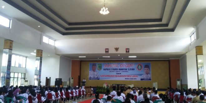 Sekedar informasi, selain melaksanakan rapat konsolidasi PGRI Kabupaten Empat Lawang, H. Syahril Hanafiah selaku Bupati sekaligus ketua PGRI Empat Lawang melangsungkan launching buku biografi inspiratif H. Syahril Hanafiah.