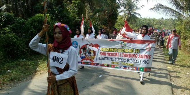 MUARA ENIM, LhL – SMK Negeri 1 Tanjung Agung turut andil pada kegiatan karnaval di Kecamatan Tanjung Agung, yang dilaksanakan pada Rabu, (15/8/2018) kemarin yang dimulai sekitar pukul 08:00 wib. Kelompok karnaval SMKN ini, mengangkat tema sukseskan Asean Games, Jakarta Palembang.