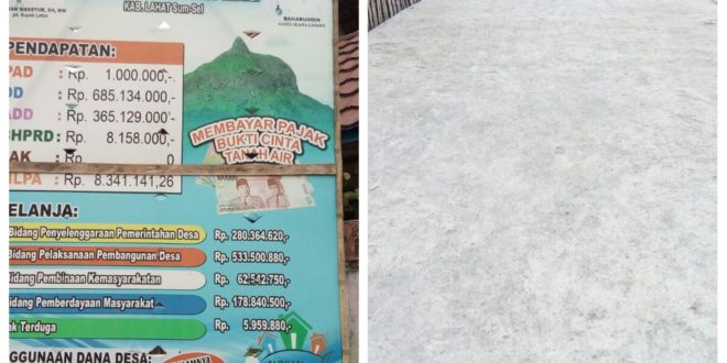 “Surat tugas anda ini hanya bisa untuk meliput kegiatan Polri, TNI, BUMN dan Pemerintahan saja. Bukan untuk meliput Dana Desa”, cetusnya terkesan memang tak mengerti tugas awak media, sembari menambahkan, kalau pembangunan siring irigasi dan perehaban jalan setapak sudah selesai.