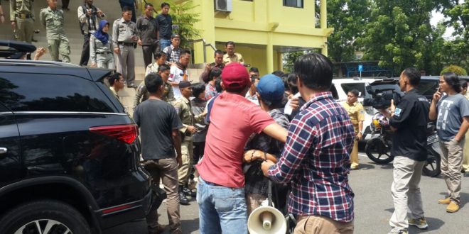 LAHAT, LhL – Puluhan massa yang tergabung dalam Forum Peduli Pendidikan (FPP) Kabupaten Lahat melakukan unjuk rasa di kantor Dewan Perwakilan Rakyat Daerah (DPRD) Kabupaten Lahat, Selasa (18/9/2018).