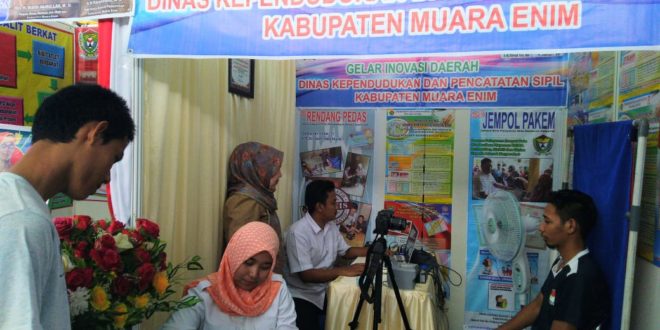 MUARA ENIM, LhL – Dalam rangka memperingati hari HUT Kabupaten Muaraenim ke 72, Dinas Kependudukan dan Pencatatan Sipil (Disdukcapil) ikut berpartisipasi dalam pameran gelar inovasi daerah di halaman GOR Pancasila Kabupaten Muaraenim. Rabu (14/10/18).