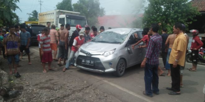 Mobil merk Agya yang di kendarai Amin (40) dengan penumpang sebanyak lima orang, penumpang berjumbah sebanyak 6 orang dan supir mengalami luka- luka ringan. Akibat kejadian tersebut mobil rengsek,kaca depan retak,spion pecah,hingga mobil tidak layak untuk melanjut kan perjalanan.