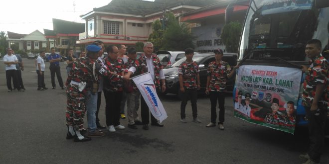 LAHAT, LhL – Bertempat di lapangan Pemkab Lahat, Jumat (04/19) Ormas Laskar Merah Putih (LMP) Marcab Lahat Ormas Laskar Merah Putih (LMP) Marcab Lahat di bawa kepemimpinan Darmawansyah, SH, berangkat menuju Ke Lampung guna memberikan bantuan kepada saudara-saudara yang terkena musibah bencana alam syunami yang terjadi beberapa waktu yang lalu.
