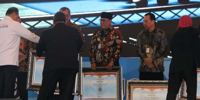 BANDUNG, LhL – Bupati Muara Enim Ir. H. Ahmad Yani MM menerima hasil Evaluasi Akuntabilitas Kinerja Instansi pemerintah Kabupaten Muaraenim tahun 2018 langsung dari Menteri Pendayagunaan Aparatur Negara dan Reformasi Bitokrasi, oleh Bapak Safrudin (28/1/2019) di Bandung dengan predikat BB dan nilai 75.07. Hasil yang cukup membanggakan ini menunjukkan komitmen dan konsistensi Pemerintah Kabupaten Muaraenim yang senantiasa meningkatkan pelayanan yang lebih baik dan lebih bertanggung jawab kepada masyarakat.