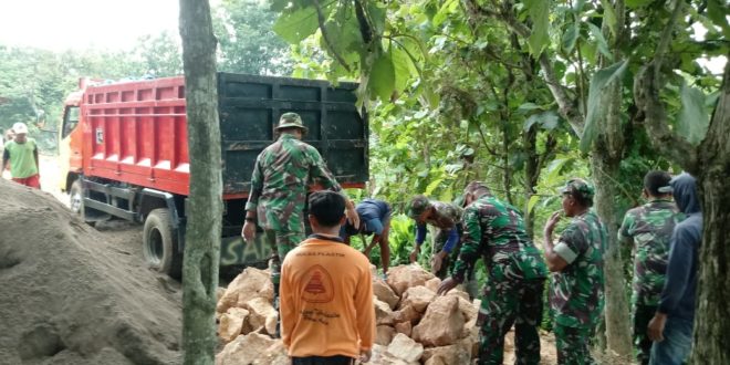 BLORA – Bekerja di lokasi TMMD Reguler ke-104 Kodim 0721/Blora, yakni di Desa Jurangjero, kecamatan Bogorejo, dituntut harus tangkas dan tanggap. pasalnya mesannya yang begitu sulit, diperparah dengan cuaca yang sedang tidak bersahabat. ”Kalau tidak derak cepat, tangkas dan tanggap, diloksi TMMD sering turun hujan, sehingga pekerjaan bisa terbengkalai,” tandas Bati Bhakti TNI Kodim Blora, Peltu Suharyanto. Setelah TMMD secara resmi dibuka, Satgas bersama warga desa sasaran nampak sigap dan tak mengenal lelah, menyusul target pekerjaan fisik yang harus diselesaikan. ”Begitu cuaca cerah, pekerjaan harus segera dikebut, konsekuesninya penyediaan material harus mumpuni,” tambah Peltu Suharyanto. Dijelaskan, berhubung jalan yang dibangun TNI dan warga tersebut satu satunya akses dalam pengedropan material, sehingga mumpung cuaca agak mendukung. “Kita sangat berterima kasih kepada warga Desa Jurangjero karena sampai saat ini mereka tidak henti hentinya selalu membantu kami yang tanpa mengenal lelah dan itulah yang menjadi penyemangat kami,” ungkap Sertu Agus, salah seorang anggota Satgas TMMD. (pendim 0721/Blora)