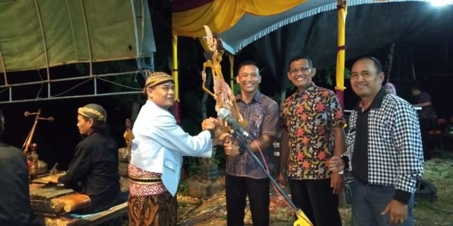 BLORA – Sebelum para anggota Satgas TMMD Reguler ke 104 Kodim 0721/Blora bersama warga desa sasaran, warga Desa Jurangjero, Kecamatan Bogorejo, bekerja merampungkan sjeumlah sasaran fisik dan nonf sisik yang diprogramkan, pagi digelar upacara pembukaan, malamnya Kodim setempat menggelar malam hiburan rakyat berupa pertunjukan wayang kulit semalam suntuk di Desa setempat. Komandan Kodim 0721/Blora Letkol Inf Ali Mahmudi S.E, bersama Perwira Staf hadir langsung di pagelaran wayang semalam suntuk dengan menampilkan dalang yang anggota TNI (Sub Denpom Blora), yakni Ki Sutahan . Tampak hadir di kesempatan itu, Kapolres Blora, Camat Bogorejo, Teguh Tri Handoyo S.E, Kepala Desa Jurang Jero, para Danramil Jajaran Kodim 0721/Blora. Termasuk hadir, kepala Dinas Kominfo Blora, Drs. Sugiyono Wayangan semalam suntuk dengan lakon “Babad Wonomarto’ tersebut digelar dalam rangka mendukung program TMMD Reguler Ke-104, utamanya sasaran non fisik. Di kesempatan itu, Dandim Ali Mahmudi mengemukakan, melalui pagelaran wayang kulit itu dalam rangka mendukung program TMMD Reguler Ke-104 kususnya sasaran non fisik. “Kegiatan ini sangat bagus dan positif karena untuk nguri-nguri budaya kesenian daerah seperti wayang Kulit yang sudah banyak di lupakan oleh masyarakat. Diharapkan pertunjukan wayang kulit bisa menjadi sarana untuk mempererat tali silaturahmi antar warga desa Jurangjero dengan dengan TNI. Pagelaran wayang diawali denan penyerahan tokoh wayang Brotoseno oleh Dandim Blora kepada kepada Dalang Ki Sutahan . Ki Sutahan sendiri merupakan putra daerah Desa Jurangjero yang adik kandung Kades Jurangjero Juwartik. ”Saya sangat bangga bisa tampil di tanah kelahiran sendiri. Saya juga berterimakasih kepada Kodim Blora yang telah menunjuk desa kami sebagai sasaran TMMD,” ungkap Sutahan. (Pendim 0721/Blora)