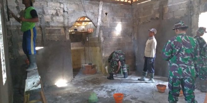 Blora – Masih banyak sasaran fisik TMMD Reguler ke -104 Kodim 0721/Blora yang harus dikejar, sejumlah Tentara anggota Satgas TMMD dengan dibantu banyak warga terus bahu membahu merampungkan rehab Mushola Al – Munawir. ”Perehaban Mushola Al -Munawir ini juga termasuk salah satu sasaran fisik TMMD Reguler Kodim Blora,” tandas Pasiter kodim 072/Blora, Kapten Inf. Puryanto. Sejumlah warga di sekitar mushola menuturkan, bahwa Mushola AL – Munawir yang berukuran 5 x 5 Meter itu, dulunya dibangun dengan swadya warga, hanya saja karena keterbatasan dana, pembangunannya dihentikan. Kondisinya, di bangunan mushola yang sudah berdiri itu, dindingnya belum di plester, dan lantainya juga belum dikeramik. Titik yang mulai disentuh Satgas dan warga adalah pemlesteran dinding mushola. Disela – sela perehaban, Sertu Agus Sriyono, salah seorang anggota Satgas TMMD yang juga lihai menjadi tukang, warga di sekitara mushola sangat antusias membantu Satgas TMMD dalam merehab Mushola Al -Munawir. ”Mereka membantu mengaduk semen dan membawa bahan adukan untuk memplester. Saya sangat senang, mudah-mudahan perehaban Mushola Al -Munawir cepat selesai,” beber Sertu Agus Sriyono. (Pendim 0721/Blora)