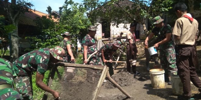 BLORA – Setelah sukses merehab dua mushola di Desa Jurangjero, Kecamatan Bogorejo (desa sasaran TMMD Reguler ke-104 Kodim 0721/Blora), sejumlah Tentara Satgas, warga dan Pramuka mulai dan terus perbaiki Mushola AL -Ikhlas yang juga menjadi sasaran TMMD tersebut. Diketahui, di TMMD Jurangjero, Tentara tidak saja membangun jalan makadm, bedah rumah tidak layak huni, melaikan juga merehab sejumlah mushola menyusul kondisinya sangat memprihatinkan untuk digunakan sebagai tempat ibadah. ”Dua mushola bolek dikata sudah suskes kami rehab, kini satu mushola lagi, yakni Mushola Al- Ikhlas yang akan kami rehab juga,” jelas Koordinator lapangan, Peltu Suharyanto. Tercatat ada tiga mushola yang menjadi sasaran fisik TMMD, salah satunya adalah sebuah mushola yang terletak di Dukuh Kembang, yakni Mushola Al-Iklas. Kondisi bangunannya boleh dikatakan sebuah bangunan setengah jadi. Tampak sejumlah TNI anggota Satgas TMMD bahu membahu bersama warga, bergotong royong bersama membangun mushola itu. Dinding yang semula belum diplester, kini mulai diplester. Direnanakan di mushola itu juga akan dipasang plafon, termasuk lantainya akan dikeramik. Diharapkan, setelah direhab nantinya, Mushola Al-Iklas akan menjadi tempat ibadah yang bersih dan nyaman sehingga warga sekitar akan menggunakan untuk sholat berjamaan, dan kegiatan pengajian untuk anak-anak. (Pendim 0721/Blora)