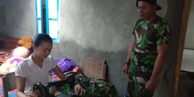 BLORA – Banyak sekali kisah inspiratif di sekitar lokasi TMMD yang meningkatkan motivasi warga untuk terus berjuang dalam segala hal. Di pinggiran desa jurangjero, sebuah rumah mungil yang berada lorong gang sempit yang membuat bagi pengendara sepeda motor akan terjatuh kalau tidak hati hati saat belok ke lorong Indah (21) warga jurangjero terlihat sibuk dengan mesin jahit menyelesaikan jahitan baju pesanan dari pelanggannya.
