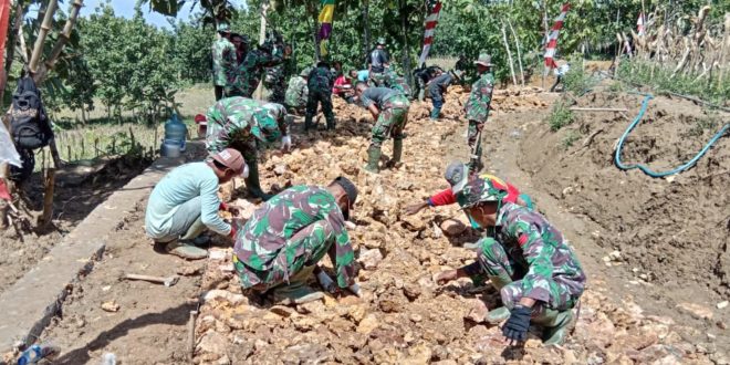 Blora – meskipun sudah 21 hari lamanya pelaksanaan TNI manunggal membangun desa ke – 104 ta . 2019 akan tetapi sejumlah sasaran fisik masih belum rampung pengerjaanya tugas berat bagi satgas TMMD bersama masyarakat desa jurangjero untuk melakukan suatu terobosan dengan cara meningkatkan intensitas pekerjaan baik jalan maupun talud yang masih belum tuntas pembangunannya meski mengalami banyak hambatan,sedikit demi sedikit hasil dari pembangunan fisik sudah mulai nampak,semua ini merupakan jerih payah TNI dan masyarakat melalui program TNI manunggal membangun desa ke – 104. (Pendim 0721/Blora)