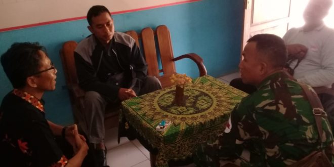 Blora – Anggota TNI Satgas TMMD Reg ke-104 Ta. 2019 Kodim 0721/Blora melaksanakan komunikasi sosial dengan Kepala Sekolah Dasar Negeri 01 Jurangjero yang berlokasi di Desa Jurangjero, Kec. Bogorejo, Kab.Blora Jawa Tengah. Dalam kegiatan tersebut anggota Tim Kesehatan Satgas TMMD Reguler Ke-104 Serka Gamargesa Harahap menyambangi Kepala Sekolah SD Negeri 1 Jurangjero guna memberitahukan akan diadakan pemeriksaan kesehatan gratis bagi para murid, guru dan Staf pengajar di lingkungan sekolah, sebagai sasaran non fisik TNI Manunggal Membangun Desa (TMMD) Reguler ke 104 Ta. 2019 Kodim 0721/Blora. Serka Gamargesa Harahap mengatakan “bahwa komsos ini selain untuk menjalin tali silaturahmi tetapi juga untuk berkoordinasi dengan Kepala Sekolah untuk kelancaran pelaksanaan pemeriksaan kesehatan gartis bagi murid, guru dan Staf pengajar SDN 1 Jurangjero”. Ungkapnya. Ditempat yang sama Bapak Suparno selaku Kepala Sekolah SD N 1 Jurangjero mengungkapkan “bahwa pihak sekolah sangat mendukung sekali dan mengapresiasi akan dilaksanakan kegiatan pemeriksaan kesehatan gratis bagi murid, guru dan Staf pengajar yang ada di Lingkungan SDN 1 Jurangjero ini”. Ungkapnya. Dia menambahkan “mengucapkan terimakasih kepada anggota TNI Satgas TMMD yang akan memberikan pemeriksaan kesehatan gratis dan semoga kegiatan ini dapat menimbulkan rasa cinta dan bangga kami kepada TNI”. Pungkasnya. (Pendimn 0721/Blora)