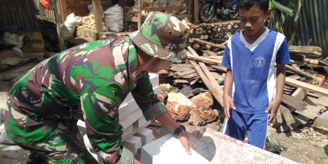 BLORA – Yang namanya anak, meski dilarangpun tetap saja nekad. Seperti yang dilakkan anak-anak SDN 2 Jurangjeo, sepulang dari sekolah nekad “keroyok” rumah Suliyat di Dukuh Kembang, Desa Jurangjero, yang sedang direhab Tentara bersama warga. kenekadan murid-murid itu dikarenakan hanya ingin dekat dengan para Tentara yang sedang merehab rumah Suliyat. Lagi-lagi yang namanya anak, saat mendatangi rumah Suliyat, meski dilarang untuk tidak ikut bekerja, beberapa diantara mereka tetap nekad membantu pekerjaan, meski yang ringan-ringan. Sekedar diketahui, rumah Suliyat yang direhab berkenaan TMMD Reguler ke-104 Kodim 0721/Blora, lokasinya berdekatan dengan SDN 2 Jurangjero. Terpisah, Serda Basuki, anggota Satgas yang ikut merehab rumah Suliyat mengaku senang begitu kompaknya warga Dukuh Kembang, Desa Jurngjero, bergotong royong membantu semua pekerjaan TNI yang sedang melaksanakan TMMD. ”Memang warga Dukuh Kembang kompak melakukan gotong royong dengan TNI merehab rumah Suliyat, bahkan sampai anak SD juga ikut membantu, itu suatu bukti bahwa sifat gotong royong warga tidak luntur,” papar Serda Basuki. (Pendim 0721/Blora)
