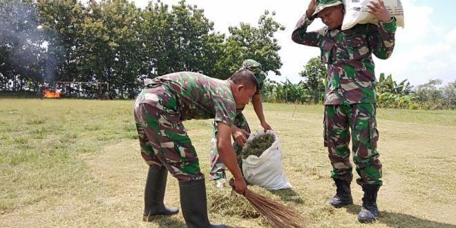 BLORA — Karena akan digunakan untuk upacara penutupan TMMD Reguler ke -104 Kodim 0721/Blora, warga dan anggota TNI terus “sisir” untuk membersihkan lapangan sepak bola yang ada di Desa Nglengkir, Kecamatan Bogorejo. Antusiasme itu terlihat banyaknya warga yang terlibat dalam kegiatan bersama anggota TNI di lapangan tersebut. ”Kami sudah berada di lapangan Nglengkir ini sejak pukul 07.30 WIB, untuk kerja bhakti membersihkan lapangan bersama pak Tentara,” ungkap Mudzakir, salah seorang pemuda asal Desa Nglengkir. Danramil 02/Jepon Kapten Inf.Sukemi mengapresiasi kepada Warga Desa Nglengkir yang begitu antusias bersama TNI bergotong-royong membersihan lapangan guna mendukung persiapan upacara peutupan TMMD Reg – 104 yang akan dilaksanakan 27 Maret 209 mendatang. (Pendim 0721/Blora)