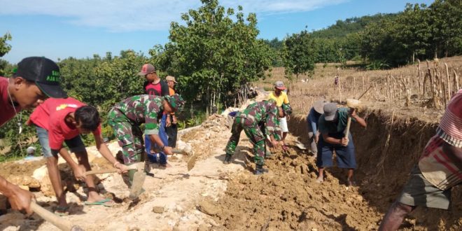 Blora – Warga Desa Jurangjero, desa sasaran TMMD Reguler ke-104 Kodim 0721/Blora, merasakan dampak pelaksanaan TMMD di desanya yang sudah berjalan hampir dua pekan. Yakni dimotori TNI Satgas TMMD, semangat gotong royong kembali hidup. ”Dengan kekompakan, pola gotong royong ternyata cukup ampuh menyelesaikan masalah atau pekerjaan seberat apapun. Untuk itu selaku yang dituakan di Desa Jurangjero, kami akan prakarsai untuk lestarikan budaya gotong royong meski TMMD sudah usai nanti,’; ujar Mbah Gito (56), salah satu tokoh berperngaruh di Desa Jurangjero. Menurutnya, warga sudah merasakan sendiri bahwa dengan bekerja secara bergotong royong pekerjaan berat jadi ringan. Persoalan berat akan mudah dicarikan solusi. Seperti halnya dii pembangunan jalan makadam sepanjang 1,360 Meter yang merupakan sasaran fisik utama TMMD, banyaknya kendala yang muncul bisa terselesaikan berkat gotong royong. (Pendim 0721/Blora)