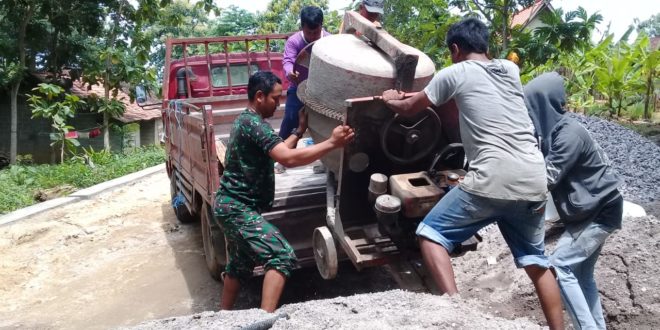 Blora- Mesin Molen didatangkan untuk kebut pengecoran rabat beton di lokasi TMMD Reguler ke 104 Ta. 2019 yang bertempat jalan penghubung Dukuh Goloyo dengan Dukuh Nglengkir. Anggota Satgas TMMD Reguler ke 104 Ta. 2019 bersama warga bergotong royong menurunkan mesin molen untuk mempercepat pengcoran rabat beton jalan penghubung antara dukuh Goloyo Desa Jurangjero dengan Desa Nglengkir. Keberadaan TMMD membawa angin segar bagi masyarakat disetiap daerah, hal yang sama juga dirasakan oleh masyarakat Desa Jurangjero kecamatan Bogorejo Kabupaten Blora. Bagaimana tidak, pembangunan Infrastruktur dan fasilitas umum lainnya yang selama ini mereka dambakan akan segera terwujud melalui program TMMD. Kemanunggal TNI pun menjadi roh dan magnet dalam menumbuhkan semangat gotong royong serta meningkatan partisipasi aktif dan swadaya masyarakat dalam membangun. Pantauan dilapangan, Secara sadar masyarkat Desa Jurangjero ikut berbaur dan saling bahu membahu bersama TNI dalam mensukseskan program Pembangunan TMMD didesanya, keberadaan para TNI telah menjadi warna tersendiri dalam kehidupan mereka. Bapak Sartiyono (54 tahun) Tokoh Masyarakat mengatakan Program TMMD merupakan kegiatan nyata yang dilakukan oleh TNI untuk tetap menjaga hubungan baik dengan masyarakat, dalam meningkatkan taraf hidup dan kesejahteraan masyarakat di Desa Jurangjero, Kecamatan Bogorejo, Kabupaten Blora. “Dengan kehadiran TNI ditengah-tengah masyarakat dapat memicu semangat untuk terus bekerja. Selama ini masyarakat kaku dengan TNI, ternyata tidak seperti apa yang kami pikirkan selama ini. TNI sangat kreatif dalam membantu masyarakat kami,” terangnya. (Pendim 0721/Blora)