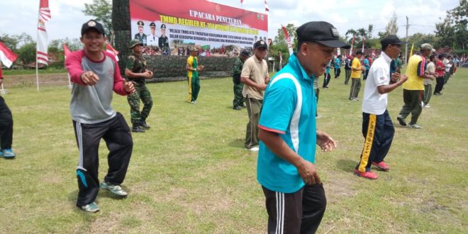 BLORA – Penutupan upacara TTMD Reguler ke 104 Tahun 2019 Kodim0721 Blora akan di tutup pada tanggal 27 Maret besok di lapangan sepak bola desa Ngelengkir kecamatan Bohorejo,Kabupaten Blora Berbagai persiapan di siapkan guna mensukseskan acara tetsebut,termasuk geladi untuk upacara dan geladi berbagai acara tambahan yang akan di tampilkan besok saat upacara penutupan TMMD selesai Tobelo yang belakangan sedang menjadi tren tidak hanya di daerah Maluku, tapi juga meluas ke kalangan masyarakat Indonesia. Institusi pemerintah mulai dari TNI, Polri, sampai sekolah dan kantor-kantor pemerintah pun terdengar sering menggunakan lagu ini sebagai audio musik mereka saat senam setiap hari Tampak terlihat pada geladi upacara penutupan TMMD Tarian tarian tersebut juga ikut di geladikan,agar dalam pelaksanaan besok bisa lancar,para penari yang terdiri dari anggota Kodim Blora dan ibu ibu Persit terlihat sangat energik walupun cuaca sangat terik Dandim Blora Letkol Inf Ali Mahmudi SE memastikan untuk segala kegiatan yang berkaitan dengan Upacara besok harus siap jangan sampai ada kesalahan atau kekurangan apapun “Saya pastikan untuk segala kegiatan besok hari ini harus selesai dan harus siap,semua yang sudah kami laksanakan selama TMMD jangan sampai ternoda gara gara hal yang sepele”Tegas Ali Mahmudi. (Pendim 0721/Blora)