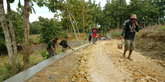 BLORA – Pembangunan jalan makadam sepanjang 1.360 meter yang menghubungkan antara Desa Jurangjero dwngan Desa Nglengkir Kecamatan Bogorejo dan talud penahan jalan dibeberapa titik yang mempunyai ukuran berfariasi memang belum sepenuhnya rampung dan masih dalam tahap finising. Namun demikian warga sudah tidak sabar untuk mencoba melewati jalan baru tersebut walapun masih ada sedikit genangan air yang memang belum sepenuhnya diuruk grosok tapi biarpun seperti itu sudah dianggap lebih bagus dari sebelumnya yang hanya bisa dilewati hewan ternak. Dalam pelaksanaan pengerjaanya, satgas TNI Manunggal Membangun Desa (TMMD) Reguler ke – 104 Kodim 0721/Blora ini memang agak tersendat dari waktu yang ditargetkan dikarenakan banyak sekali kendala yang dihadapi dilapangan terutama cuaca dengan seringnya turun hujan mengakibatkan sulitnya pengedropan material yang seharusnya bisa sampai ke titik bongkar. Tapi dengan perjuangan satgas dengan dibantu warga setempat semua kendala tersebut bukanlah menjadi hambatan yang berarti. Saat masih sibuk sibuknya satgas bekerja, terlihat seorang warga Dukuh Ketringan Desa Nglengkir nekad mencoba untuk melewati jalan baru tersebut dengan memboncengkan barang bawaannya biarpun harus sangat berhati hati yang dikarenakan dibeberapa titik masih ada gundukan grosok maupun genangan air. (Pendim 0721/Blora)