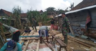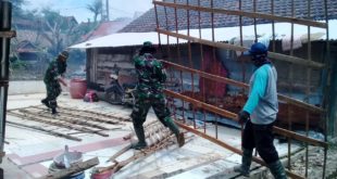 Baca Selanjutnya...TNI BERSAMA WARGA KEBUT PEMBONGKARAN ATAP RTLH MILIK SULIYAT