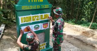 BLORA – Tugu Prasasti TMMD Reguler Kodim Blora, yang dibangun di titik 0 pembukaan jalan TMMD, di Desa Jurangjero Kecamatan Bogorejo, sudah berdiri begitu megahnya. TNI anggota Satgas tengah mengecat tugu itu, dan sengaja dipilihkan bahan cat berkualitas supaya bisa tahan lama. ”Saya sudah pesan khusus memang, agar di pengecatan …