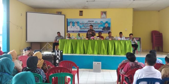 MULAK ULU, LhL- Dalam rangka menjaga kesehatan masyarakat dan berobat gratis, khususnya Kecamatan Mulak Ulu dan Mulak Sebingkai Kabupaten Lahat Propinsi Sumatera Selatan, maka Puskesmas Muara Tiga mensosialisasikan program jaminan pemeliharaan kesehatan masyarakat dan berobat gratis. Pelaksanaan sosialisasi ini bertempat di Aula kantor camat mulak ulu.