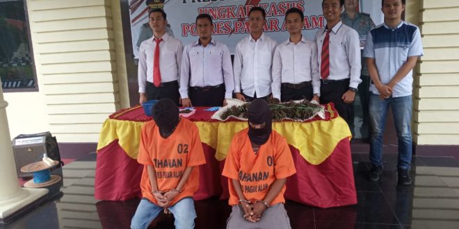 “TSK yang kita amankan Dedi Bin Misnan warga Kelurahan Besemah Serasan, RT 02/ RW 06, Kecamatan Pagar Alam Selatan dikenakan dengan Pasal 114 ayat 1 dan 2 UU 35 tahun 2009 tentang Narkotika dengan ancaman pidana seumur hidup minimal 7 tahun penjara, serta Robby Dwi Anugrah bin Aswin Hendri , Warga Mekar Alam RT 18/RW 96 Kelurahan Pagar Alam, Kecamatan Pagar Alam Utara, Kota Pagar Alam dikenakan Pasal 114 ayat 1 dan pasal 111 ayat 1 UU 35 Tahun 2009 tentang Narkotika dengan ancaman Pidana maksimal 20 tahun minimal 5 tahun,” Pungkasnya.