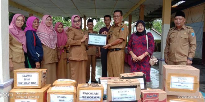 Kepala Sekolah SDN 1 Merapi Barat Ramiyana SP.d., bersama para guru menyerahkan bantuan berupa Beras 50 kg,Mie Instan 2 dus,Minyak Goreng 1 Dus,dan Pakaian Layak Pakai 13 dus,kepada panitia bencana banjir bandang yang terima langsung oleh Camat Kikim Timur Pebroni,SE.,MM., didampingi oleh Ketua TP.PKK Kecamatan Kikim Timur Marlianti,yang didata oleh Sekcam Kikim Timur Egawarti dibantu oleh para pegawai kantor camat Kikim Timur.