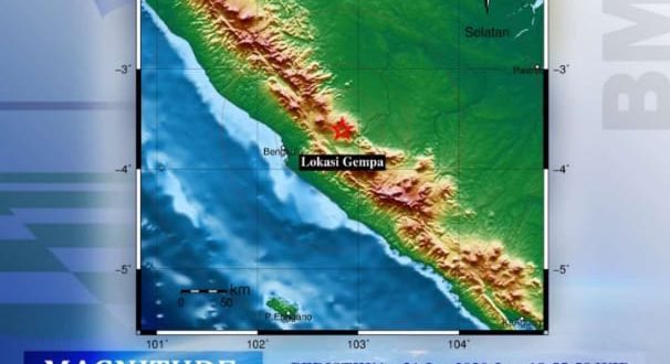 Dari informasi yang didapat menurut BMKG, pusat gempa berasal dari Provinsi Bengkulu dengan skala Magnitudo kurang dari 5 (Lima).