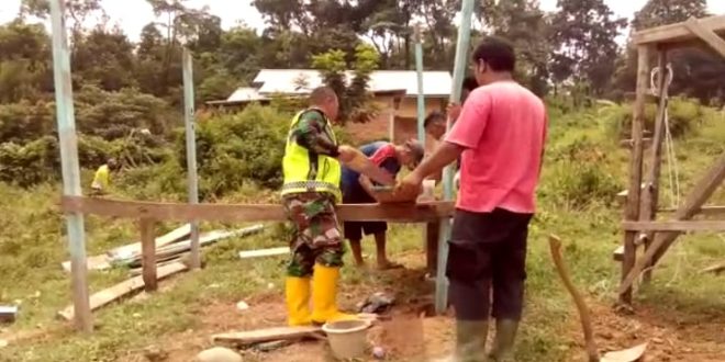 LAHAT, LhL – Babinsa Koramil 405-12 Kota Lahat Kodim 0405 Lahat bersama warga bergotong royong membangun pos kamling. Pembangunan pos kamling dilakuman sejak ahad (1/3) hingga beberapa hari kedepan.