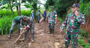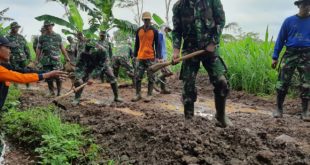 Kudus, LhL – Beberapa personil Kodim 0722/Kudus yang tergabung Satgas TNI Manunggal Membangun Desa (TMMD) kerja bakti bersama masyarakat Dusun Talun bergotong royong guna menyiapkan lokasi sasaran fisik untuk melancarkan kegiatan pembangunan jalan baru di Desa Kedungsari Kecamatan Gebog Kabupaten Kudus.Senin 9/3/2020. Sastro,warga Dusun Talun, mengaku sangat bersemangat menyambut TMMD …