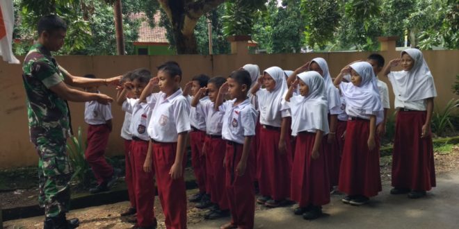 KUDUS, LhL – Di sela-sela kegiatan fisik TMMD Reg. Ke – 107 kodim 0722/Kudus Serda Sudarno menyempatkan diri berkunjung ke sekolah SD 2 Kedungsari Kecamatan Gebog Kabupaten Kudus,Selasa 10/03/20.