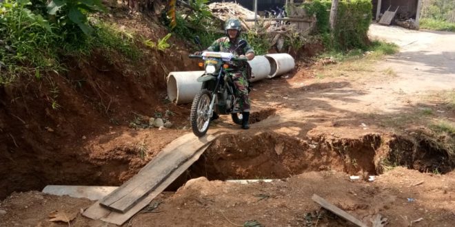 “Demi NKRI jalan terjal dan jurang yang curam harus kita lalui dan semua anggota yang melintas dalam pelaksanaan TMMD kali ini, lebih waspada karena jalan yang licin saat turun hujan” ujar Serka Fitron salah satu anggota Satgas dan juga anggota Koramil Gebog.