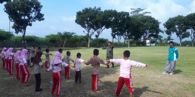Pagi ini, di Lapangan sepak bola Desa Kedungsari tengah berkumpul anak-anak SD 1 Kedungsari untuk melaksanakan jam mata pelajaran olahraga, Melihat pemandangan yang demikian, seorang anggota Satgas TMMD, Serma Arif mengampiri anak SD tersebut dan menyapa mereka. Sontak, mereka tersenyum dan meminta berjabat tangan.