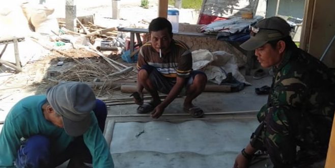 KUDUS .Para warga ikut gotong royong memindahkan bahan – bahan pengecoran jalan pra TMMD Desa Kedungsari, Kecamatan Gebog Kabupaten Kudus, Semangat kerja anggota Satgas Pra Tentara Manunggal Masuk Desa (TMMD) bersama warga tetap semangat membara,Jumat 13/3/2020 .