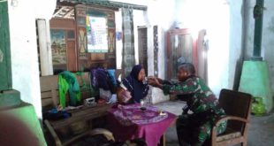 Kudus – TNI Manunggal Membangun Desa (TMMD) ke 107 Kodim 0722/Kudus dipusatkan di Dukuh Talun Desa Kedungsari Kecamatan Gebog Kabupaten Kudus disela-sela kesibukan sempatkan diri menjenguk Ibunya, Minggu (15/03/2020). Seiring berjalanya waktu kegiatan terus berjalan, Anggota Satgas Pra TMMD tak lupa sempatkan diri menjenguk Ibunya yang masih berada di sekitar …