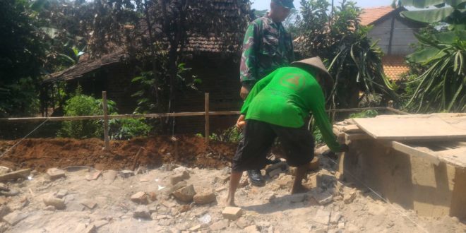 Kudus- Untuk mensukseskan pembangunan progam Tentara Manunggal Membangun Desa (TMMD) Reguler 107 Ta 2020 Kodim 0722/Kudus, satgas pra TMMD beserta warga masyarakat Desa Kedungsari dalam pengerjaan Rumah Tidak Layak Huni (RTLH) milik Bapak Silakan (67) Rt 3/7 Desa Kedungsari Kecamatan Gebog Kabupaten Kudus, minggu (15/3/2020).