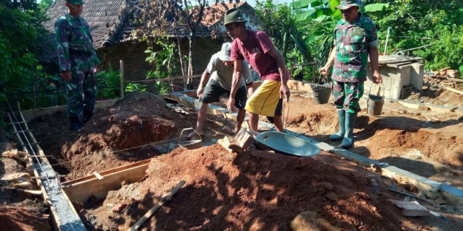 Kapten Inf Sukaryono selaku kordinator lapangan dalam bedah rumah,selalu ikut serta dalam pembuatan pondasi bedah rumah agar target pembuatan RTLH milik bapak Sulkan cepat selesai.