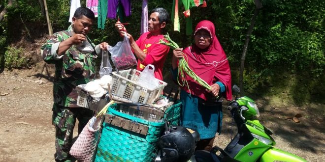 Terpisah ibu Yati (40),warga setempat di mana rumahnya di tempati sejumlah pasukan anggota Satgas TMMD mengaku,karena mempunyai keluarga baru dari kalangan TNI di rumahnya,setiap hari belanja sayuran juga ikan,Selasa (17/3/2020). ( Pendim Kudus )