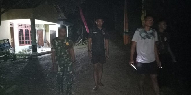Serda Anton bersama warga dukuh Mudal Rejo rt 2/7 Desa Kedungsari melakukan patroli keliling di wilayah dukuh Mudal Rejo , rabu dini hari (18/3/2020).