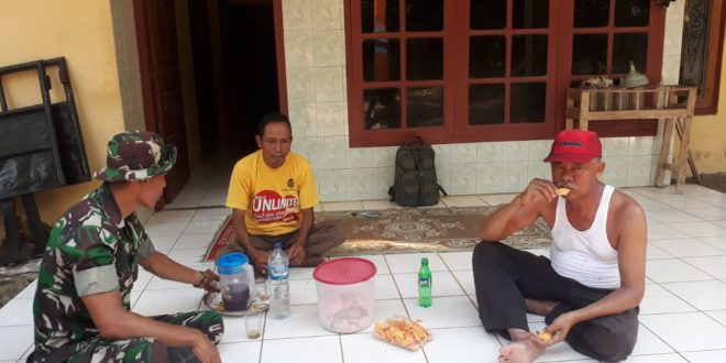 Kudus – Serda Sudarno, anggota Satgas TMMD Reguler Ke 107 Kodim 0722/Kudus memanfaatkan waktu istirahat kerjanya untuk menyambangi warga. Hal ini dilakukannya guna mempererat silatuhami antara Satgas dengan warga sekitar lokasi TMMD.(18/03/2020)