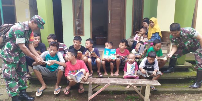 Kudus – Guna menanamkan gemar membaca sejak usia dini, TMMD Reguler -107 Kodim Kudus tepatnya di Dusun Talun Desa Kedungsari Kecamatan Gebog Kabupaten Kudus ini Satgas TMMD berinisiatif mengajak dan menghimbau kepada anak – anak usia dini untuk mengembangkan minat budaya baca untuk mengisi liburan sekolah mereka.Jumat 20/3/2020.