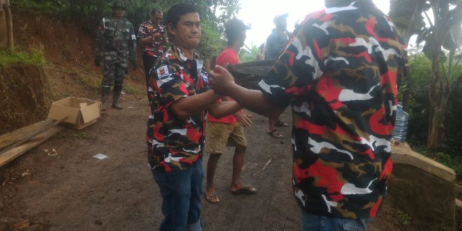 Kudus – Sejumlah Organisasi masa (Ormas) Merah Putih Cabang Kudus mendarmakan diri untuk ikut terjun ke lokasi TMMD Reguler ke-107 Kodim 0722/Kudus, Minggu (22/3/2020).