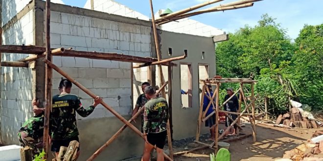 Kudus – Pembangunan unit RTLH bagi warga kurang mampu merupakan salah satu kegiatan fisik program TMMD (TNI Manunggal Membangun Desa) Reguler ke-107 Kodim 0722/Kudus di Desa Kedungsari, Kecamatan Gebog, Kabupaten Kudus, Minggu (22/03/2020).